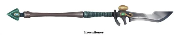 The Executioner is a large two-handed Power Glaive available only to Howling Banshee Exarchs, which is capable of slicing an opponent in half with a single blow. The Phoenix Lords Jain Zar and Maugan Ra also use Executioners.