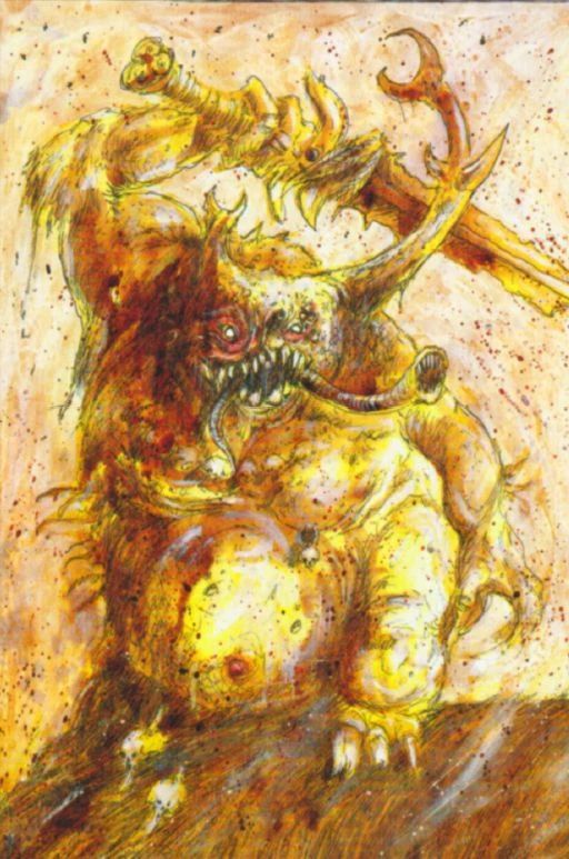 Indeed, it is not uncommon for Great Unclean Ones to compete amongst themselves in the matter of spreading Nurgle's plaguesome blessings across the galaxy. They take great pride in the achievements of their fellow servants of Nurgle, proclaiming vociferously the splendours of the poxes and sores evidenced by those around them, and laugh heartily at the death and destruction wrought in Nurgle's name.