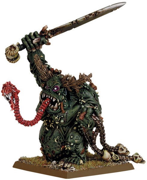 Natural-borne carrion creatures, numbering in the thousands, gather around the Greater Daemon to protect it and trail in its wake. Hordes of sky-blackening flies, rats, vultures, crows, and worms inevitably follow a Great Unclean One's passing.
