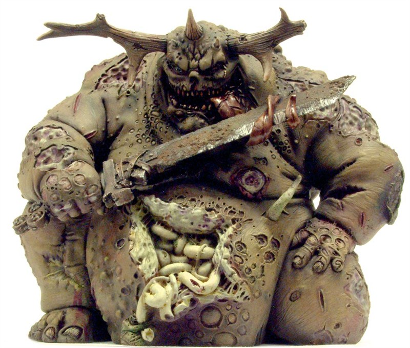 To the mortal eye, a Greater Daemon of Nurgle is undoubtedly the foulest of all the daemonic servants of the Ruinous Powers. Each of these Great Unclean Ones is shaped in the fashion of Nurgle himself; flyblown, maggot-ridden innards spill into view through the tears and gashes in his swollen belly as he lumbers forwards.