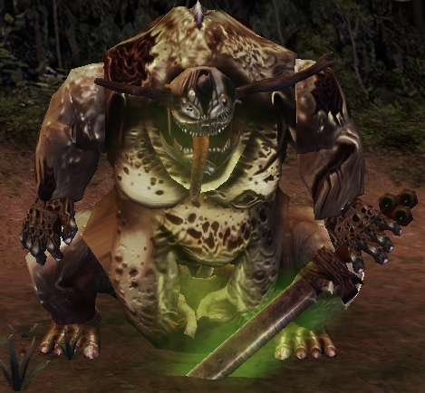 Their forms are squat and mountainous, covered in rotting flesh and open sores that weep foul rivulets of pus. Hot ropes of intestines dribble out of huge tears in their enormous, bloated and distended bellies. This horrific girth is supported by two impossibly small and atrophied-looking legs, and their inordinately large, bulbous heads are crowned by enormous stag-like antlers.