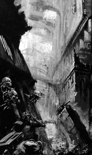 Continuous warfare raged across the surface of Terra for 2,500 years, beginning in the late 27th Millennium. Little remained of the once sophisticated civilisation of Old Earth's glorious past as the centre of a growing human interstellar commonwealth marked by advanced science, high culture and wondrous technologies. Techno-barbarian warlords and their warrior hordes continuously fought over the planet, which had become little more than a massive battleground for their wars of attrition. They made use of chemical, biological and even thermonuclear weapons of mass destruction, and slowly transformed the cradle of Mankind into a battered, post-apocalyptic wasteland across most of its scarred surface.