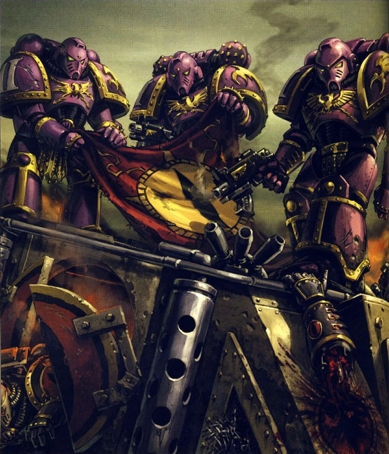 Seventy Loyalists of the Death Guard Legion and the Imperial Saint Euphrati Keeler led by Battle-Captain Garro had commandeered the Imperial frigate Eisenstein and, evading the Traitor forces of Horus, were able to escape from the Istvaan System into the Immaterium, after being told what was happening on the planet. The Eisenstein was badly damaged by the Death Guard battleship Terminus Est during its escape from Istvaan III and it was assaulted by undead minions, including the first known Plague Marines of Nurgle while it was within the Immaterium. This assault by Warp entities forced the ship to make a crash emergence from the Warp. The repeated traumas left all of the frigate's astropaths dead, and its lone Navigator was mortally wounded. However, Garro managed to attract the attention of passing Loyalist starships by setting the vessel's Warp-Drives to self-destruct and ejecting them from the starship. Rogal Dorn's Imperial Fists Legion's massive mobile fortress-monastery Phalanx and the Legion's fleet had been becalmed in the Warp for some time due to the waxing power of the Ruinous Powers as the Heresy began, and his Navigators sensed the detonation of the Eisenstein's Warp-Drives. Charting an immediate course for the location of the detonation, Dorn met with Garro, who explained to him all that had happened with the Traitor Legions. Dorn was reluctant to believe Garro's tale, but overwhelming proof from a Remembrancer (journalist) named Mersadie Oliton who had escaped from Horus' flagship, the Vengeful Spirit, and Garro's dogged insistence finally convinced the Primarch. The Phalanx fortress set a course for Terra.