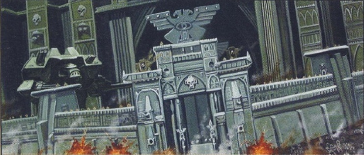 To prepare the world for the Imperial Triumph, geoformer platoons from the Adeptus Mechanicus brought world engines and mobile stone-burners to cut a massive swath across the broken landscape left in the battle’s wake. Orkish dead were buried by the millions with their savage ruins, interred beneath transplanted rocks and the heads of crushed mountains. The Mechanicus eradicated every last remaining trace of the enemy and paved over them with a giant boulevard, a parade stage as wide as the footprint of some entire Imperial cities. They built a highway and allowed only one structure to stand besides the great platform -- an ornamental pavilion of black marble and heavy granite that had been built piecemeal on Terra and then shipped across the void by special envoy. Marker posts decorated with the skulls of Ork commanders paced out the length of the road, and behind them great bowls of smokeless Promethium burned brightly, endlessly lighting the highway with their blue-white fire.