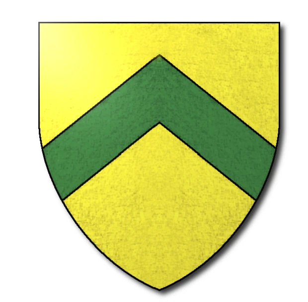 The arms of House Arakon are a green chevron outlined in black, pointing upwards, on a field of yellow.
