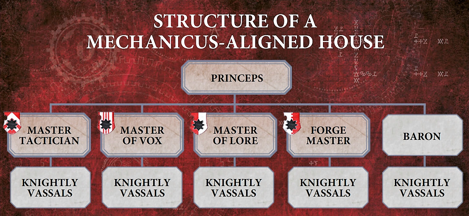 Most knightly houses, though by no means all, are associated with an Adeptus Mechanicus Forge World, and in return for fighting alongside that Forge World's Titan Legions, they gain access to advanced technology and knowledge that only the Adeptus Mechanicus possess.