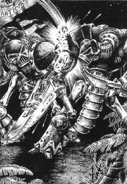 As their power grew, they arbitrated between the Knight houses and ensured that the headstrong Nobles did not wipe out one another in bitter feuds. The perpetual dangers of their worlds meant that the Humans could ill afford wars of mutual attrition and genocide, and this necessitated the use of chivalric values to settle disputes. Eventually the Sacristans ritualised the values of Duty, Honour and Valour and passed these traditions through generations. With the acceptance of these values, the Knights became known as The Chivalry.