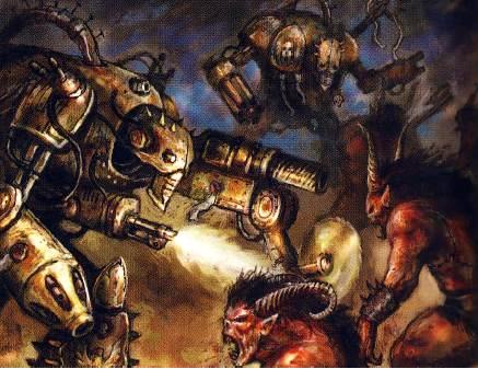 The resultant schism was exploited by Horus himself when he betrayed the Emperor. Its legacy survived with the Dark Mechanicum, whose members still go to infernal lengths to give life to their machines. Many later-pattern robots are tainted by their association with the machine-predators of that desperate age.