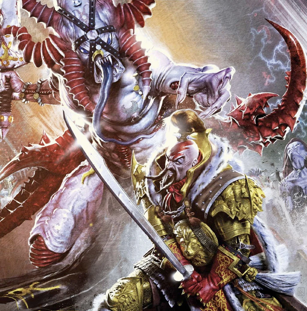Jaghatai Khan fighting against a Keeper of Secrets during the Horus Heresy.