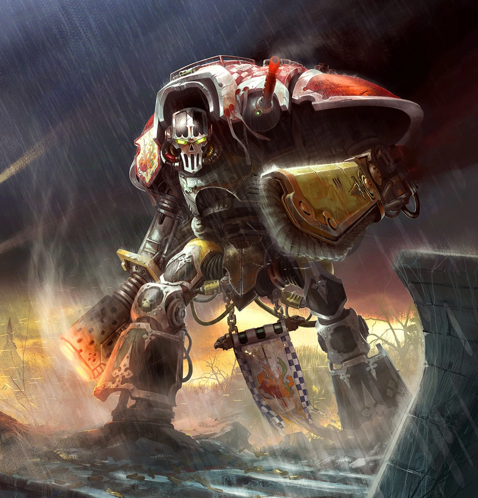 The Knight of Ashes, once named Luk Tan Chimaeros, is a Freeblade of the Imperial Knights who has been active across the galaxy in the wake of the Donatos War. Luk Tan Chimaeros was the last son of a disgraced Knight House that turned Renegade and entered into the service of Chaos. After swearing the Freeblade Oath he embarked on a personal quest for vengeance and forgiveness, trying to atone for the betrayal by House Chimaeros of the Emperor and the other Knight Houses of Adrastapol.