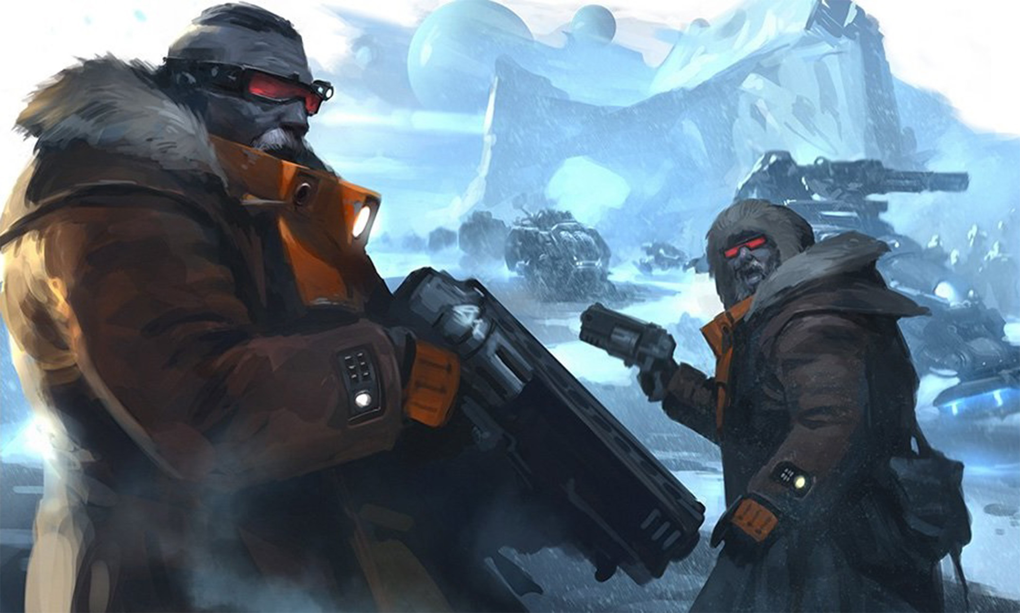 Squat strongholds -- autonomous mining colonies -- formed allied leagues, with recognisable Dwarf traits from Warhammer Fantasy Battles such as ancestor worship, facial hair, a hefty dose of grumpiness, and a knack for metalwork, advanced technology and engineering projects of vast scope. A more futuristic twist was their favoured mount -- the leagues rode heavy bikes and trikes into battle, combining the aesthetics of Viking warriors and leather-clad biker gangs.