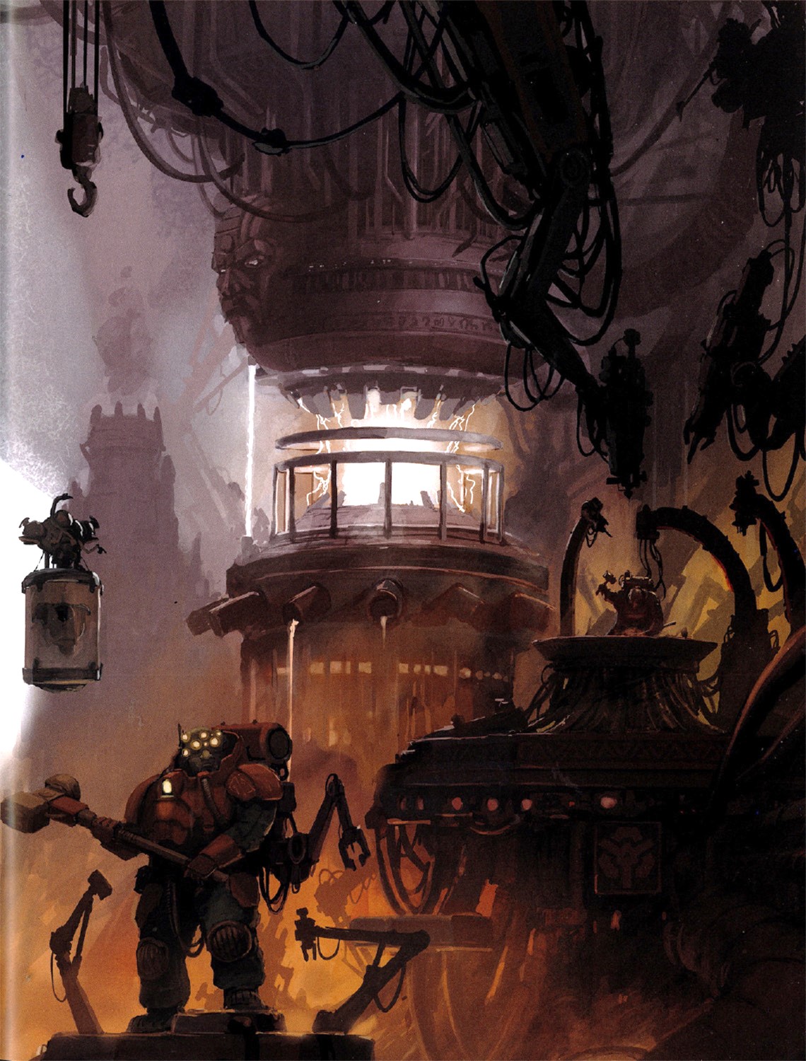 The second pillar is "the Forge," wherein the Kindred known as Brôkhyr craft the weapons, equipment, tools, vehicles and technologies required to sustain them. In planet-based holds the Forge may be a conventional -- if vast -- industrial workshop, but in others it may take the form of a huge factory-vessel, a hollowed out industrial asteroid or a grav-anchored factory-station.