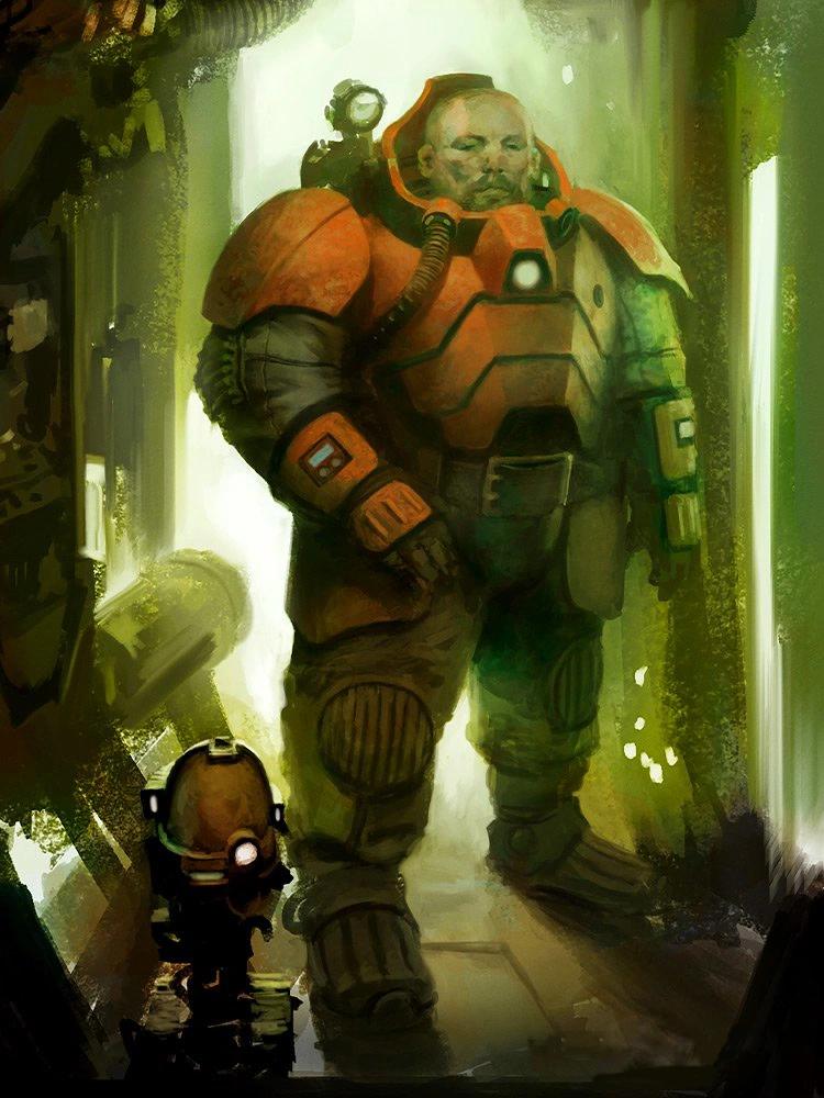 Homo sapiens rotundus may have started life as a sci-fi restyle of fantasy Dwarfs, but as the setting grew, they too became more unique. A galactic power in their own right, the Squat leagues were powerful enough to trade and negotiate with the Imperium on an even footing -- in fact, Imperial commissars were forbidden from executing their soldiers who served in the Astra Militarum -- and such skilled technologists that the Adeptus Mechanicus sent tech-priests to study with them, which would probably be considered tech-heresy nowadays.