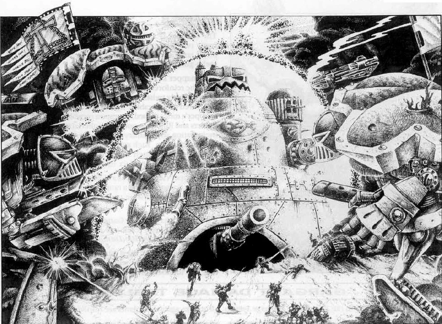 So far this thirst for battle has been viewed as a useful attribute, particularly against foes other than Orks who find the Legion a highly unsettling opponent. Even the Fabricator General of Mars expressed surprise when he first learned that this Legion's crewmen had outfitted their war machines with amplifiers so that they could reply to the Orks' war cries with their Legion's own somewhat simple-minded battle chant.