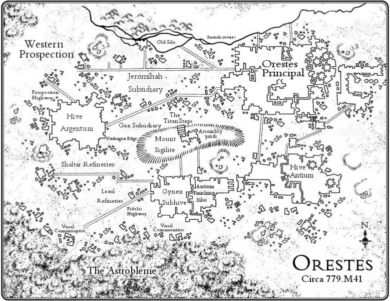 Map of Orestes' primary forge cities during the defence of the world in the late 41st Millenium