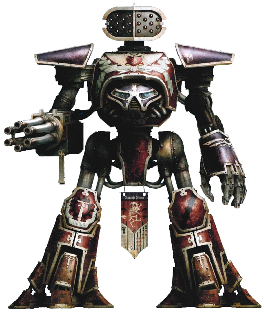 - Immitis Venor (Reaver-class Titan) - This Reaver-class Battle Titan depicted above was typical of those deployed to Beta-Garmon by the Death Stalkers. Armed with a rapid-firing Gatling Blaster and Power Fist, it would fight alongside other Reavers, often as part of a Corsair maniple, conducting punishing hit-and-run attacks against more conventional Titan formations. It also illustrated that few Death Stalkers Titans or Titan maniples marched to war without at least one Titan close-quarters weapon.