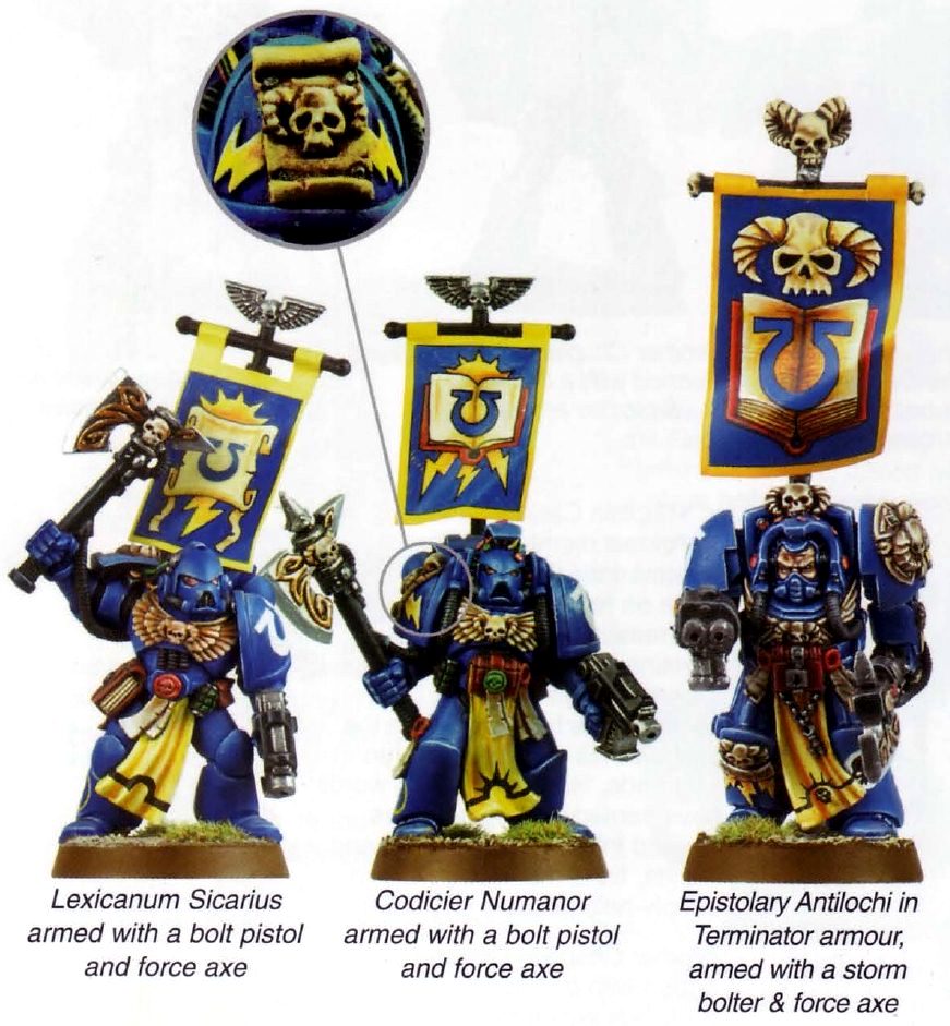 Librarians appearance, from left-to-right: Lexicanium, Codicier and Epistolary of the Ultramarines Chapter