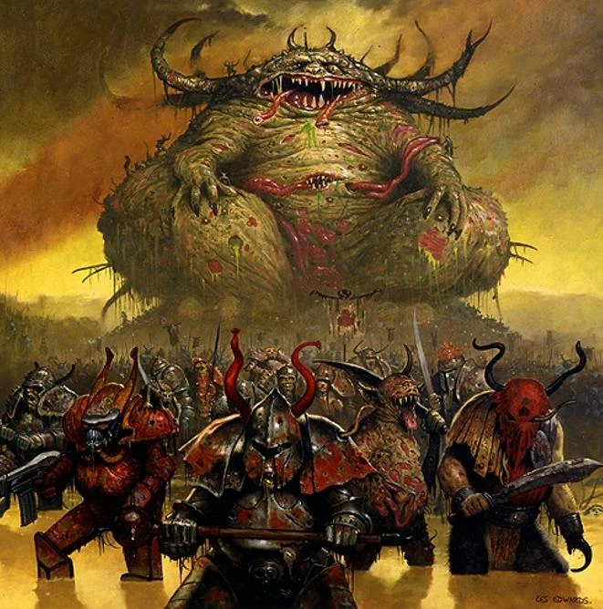 Each mortal that falls begets new life and new hope. This is the trade in which Nurgle traffics. Flesh is the coin of his realm, and hopes are the interest he pays on the investments made. Truly, Nurgle embodies the nature of all things, and thus earns his honorific as the Lord of All.
