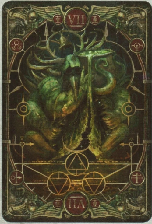 A representation of Nurgle on a card as depicted in a heretical deck of the Emperor's Tarot used for psychic auguries.