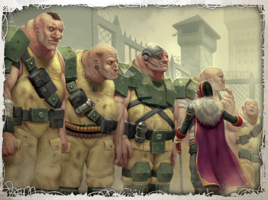 - 51st Abhuman Penal Suppression Detachment - The 51st Abhuman Penal Suppression Detachment is made up of those Ogryns deemed unfit for frontline duty, either due to permanent injury, or exceptionally limited intellect (even for Ogryns). The Administratum within the Spinward Front has put these "damaged" Ogryns to work aboard the prison barge Oath of Judgement as wardens. The vessel routinely travels around the sector taking on military prisoners, guardsmen who have failed to adhere to the strict regulations of their regiment or committed some minor crime that was undeserving of summary execution. The upper decks of the vessel remain sealed at all times and the Ogryns patrol the lower decks with the prisoners, told to keep anyone smaller than themselves from causing trouble. So far this practice has worked, with the prisoners for the most part intimidated by the Abhumans and the Ogryns too stupid to fall for any of their tricks. On occasion the Suppression Detachment is also used in a policing role on Imperial Navy vessels or Imperial Guard bases, where their heavy handed tactics can be used to quell riots and round up criminals.