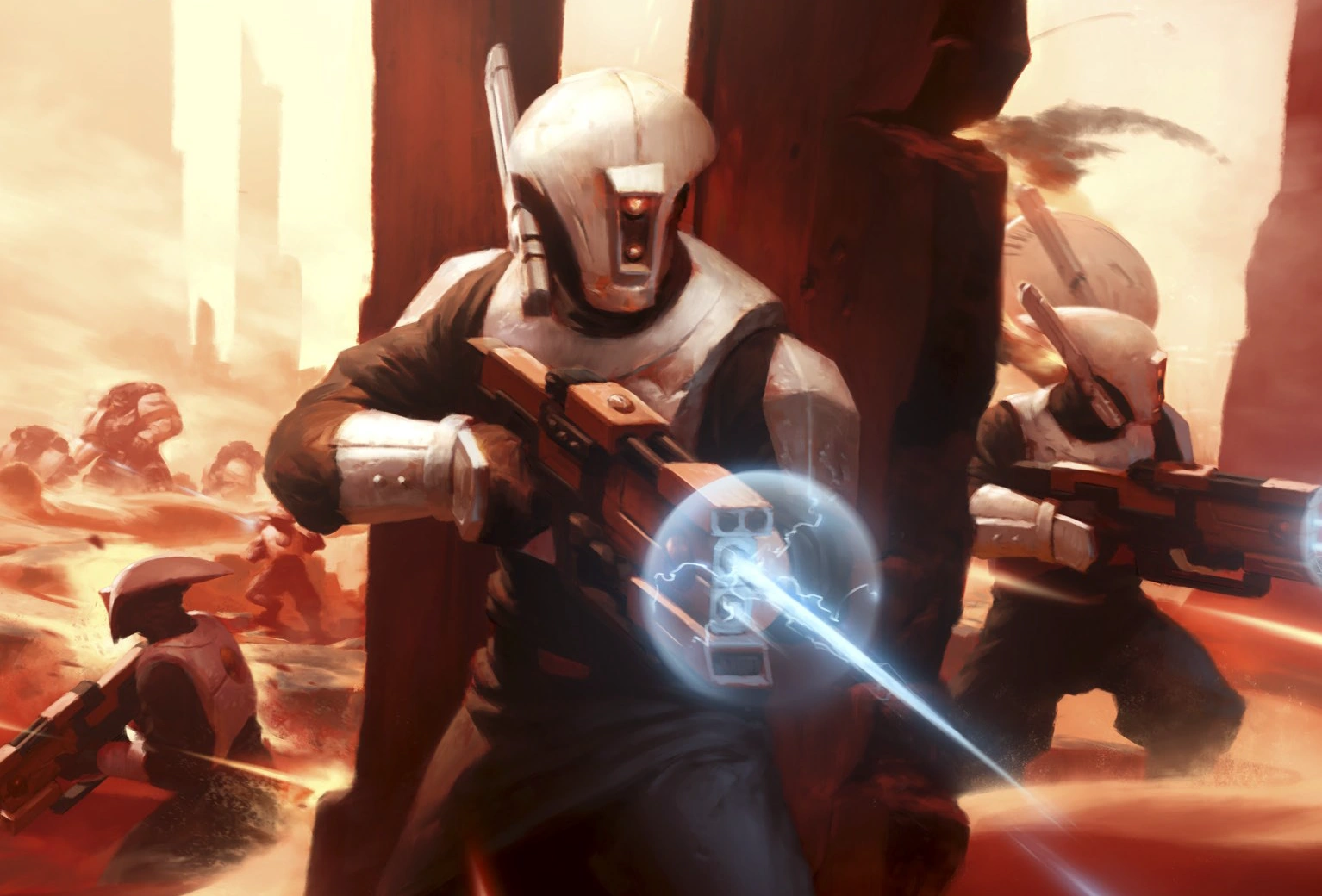 When fighting on the frontline standard Fire Caste doctrine, as laid down in the Code of Fire, instructs all warriors to fight closely together, with each member of a team doing his utmost to protect not just his comrades, but also nearby teams in his Cadre. Through the use of overlapping fields of fire, Pathfinder Teams can also provide supporting fire and help annihilate the enemy.