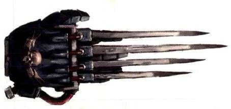 A Lightning Claw is a specialised type of power weapon. It consists of a power gauntlet and four blades attached to the gauntlet's fingers that crackle with matter-disruptive energy.
