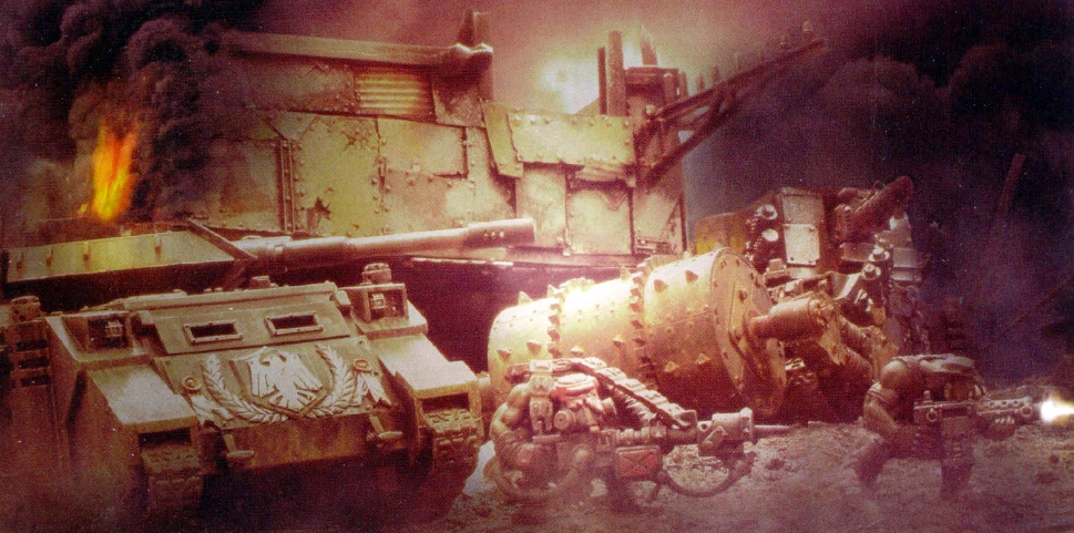 The forces of Mankind were having great difficulty combatting the Ork's reckless attacks and headlong charges, and thus the Predator main battle tank was developed with thick armour and powerful weapons that allowed it to resist the attacks of most Ork weapons.