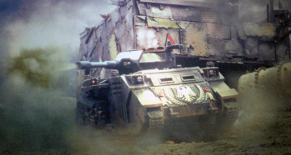 Space Marine battle tanks are not permanently attached to any one company. Instead they form a vehicle pool, and individual tanks are available for deployment to Space Marine commanders as required. Upon its creation, a Space Marine battle tank is assigned a name that reflects its role as a protector of the Chapter's brethren.