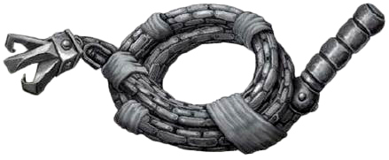 - Grapplewhip - A tool popular amongst some of the (usually short-lived) brand of Rogue Traders who fancy themselves "adventurers," a grapplewhip is like a standard Groxwhip. Though these devices can be dangerous to inexperienced users, lashing back and cutting gashes across an unprepared wielder, they are still popular with certain contingents in the Koronus Expanse. A user can latche the grapplewhip onto a protruding object within 5 metres. The grapplewhip can then retract, albeit not as quickly as it can extend, pulling the object to the person (or the person to the object). If a user without the appropriate training to wield a grapplewhip attempts to lash out at a target with an attack and misses, it snaps back, striking them instead of their intended target.