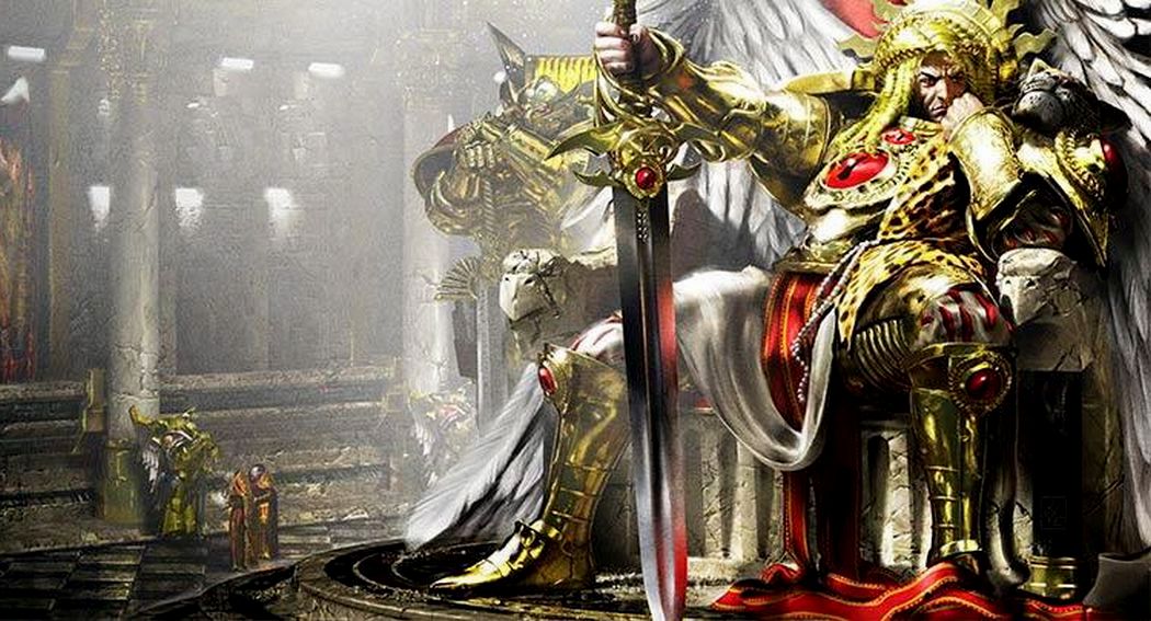 Primarch Sanguinius with his father, the Emperor of Mankind and Rogal Dorn of the Imperial Fists