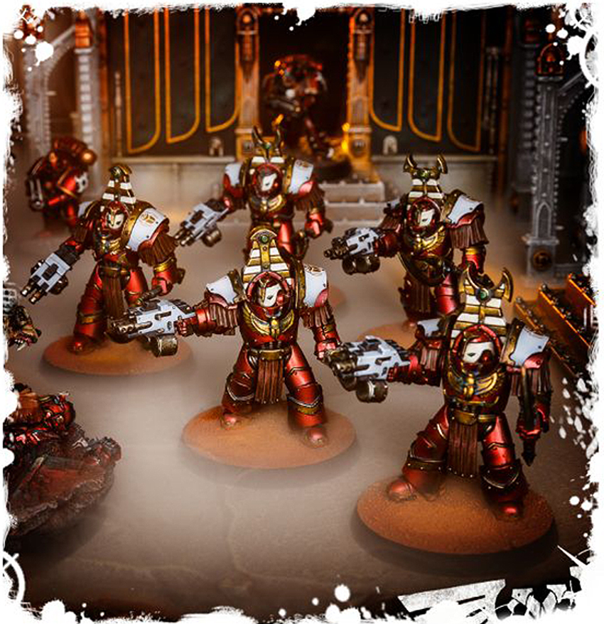 They were made up of the best and brightest of the Thousand Sons Legion's Astartes and were equipped with resplendent crimson and ivory Tactical Dreadnought Armour, with jade scarabs gleaming on their breastplates and golden crests rearing from their Atef helmets.