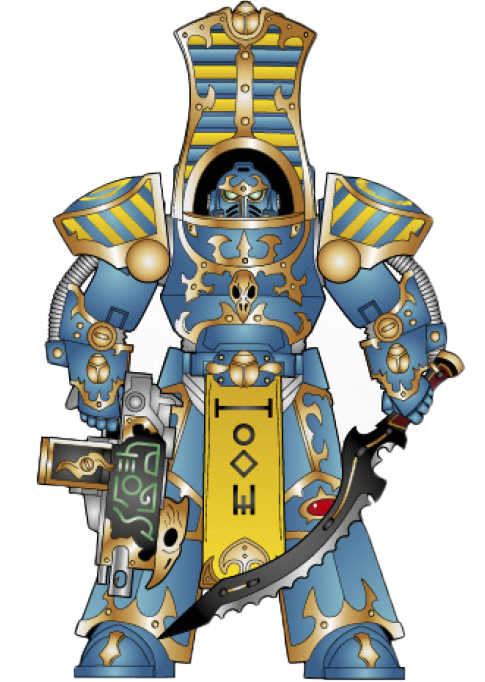 A Sekhmet Honour Guard Terminator of the Thousand Sons Legion's 1st Fellowship, arrayed in Cataphractii Pattern Terminator Armour during the Great Crusade.