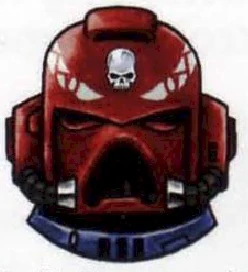 Traditionally, in Codex-compliant Chapters, a Sergeant's badge of rank is a red skull displayed on their left shoulder plate and a red helmet. The legacy of the red-coloured helm hails back to the Great Crusade and the beginning of the Horus Heresy eras in the early 31st Millennium.