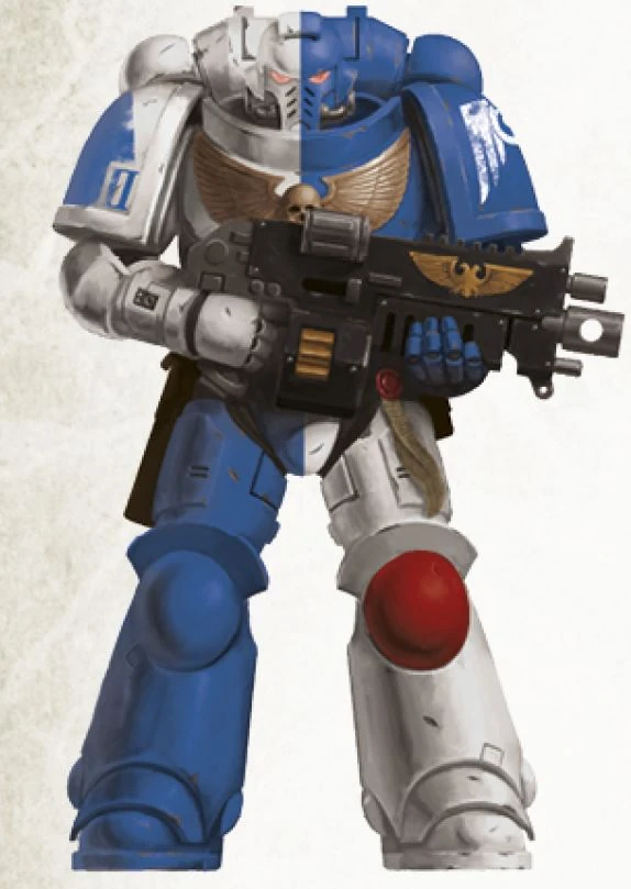 Sons of Guilliman Chapter Colour Scheme as displayed by a Firstborn Space Marine.