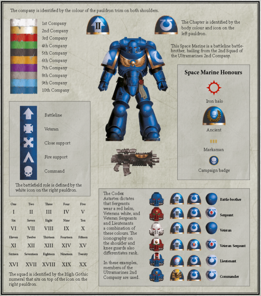 Over time, the Space Marine Legions gained their own marks of distinction and character. Names, Emperor-given in some cases, others by the primarchs, came to replace the Legions' original numbers, with many Space Marine companies seeking to single themselves out from their brother Legions.