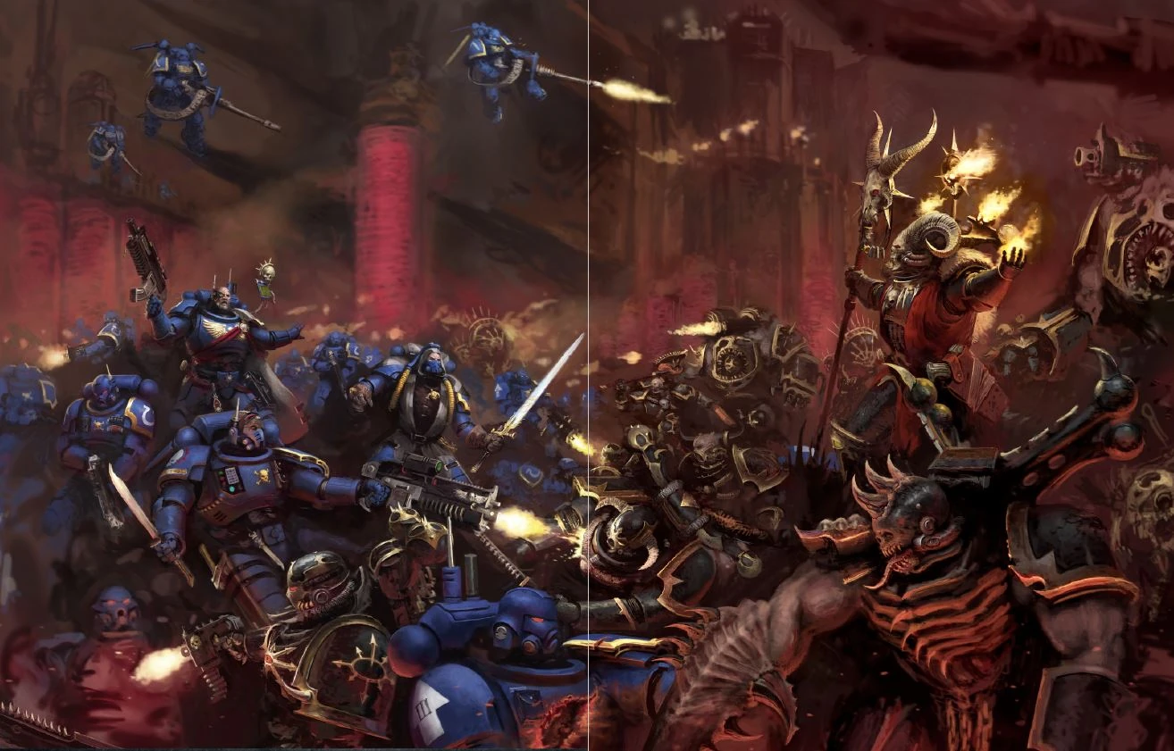 Battle between Loyalists and Traitors during the Istvaan III Atrocity, heralding the outbreak of the Horus Heresy.