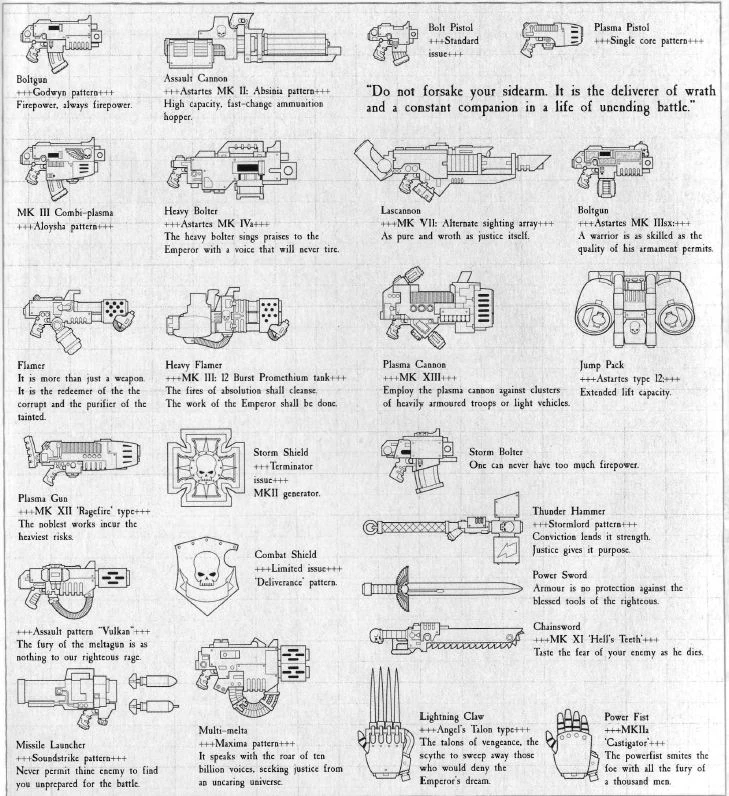 All of the wargear of the Space Marines is painstakingly maintained, and many items are covered in lines of intricately rendered devotional script in High Gothic, each line detailing a battle honour won in a glorious campaign.