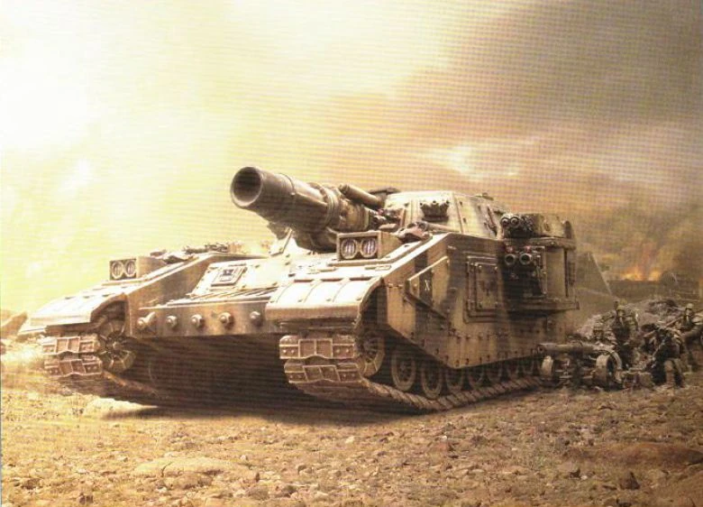 The result was a super-heavy tank that was almost unparalleled in the urban assault role, its massive main gun able to bring down any building and scour defenders from even the heaviest cover. Because of its origins, few Stormswords were exactly the same. Certain Tech-priests claimed however that some perfectly functional Shadowswords and other super-heavies had been deliberately converted into Stormswords for use by the Solar Auxilia Cohorts in urban war operations. If true, this was a significant transgression of a number of rigid doctrines by which the Mechanicum operated and a potential cause of costly doctrinal schism. The Stormsword was also found in the armouries of some of the Space Marine Legions, in particularly the Iron Warriors Legion.