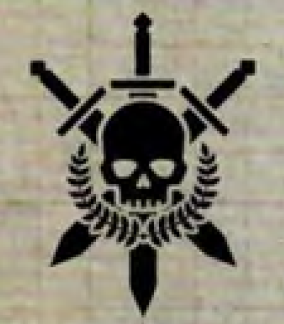The cap badge for the Tanith is a wreath-surrounded skull with three daggers behind it; each dagger representing one of the original Tanith regiments. On the badge is the inscription "For Tanith, For the Emperor". After the destruction of the Tanith 2nd and 3rd Regiments, the Tanith snapped off the two outside daggers on their cap badges. The Verghastite cap badge is an axe-rake to symbolise their former hive city's mining and industrial background. These pins and other badges that indicate rank or specialisation are dulled down with soot or boot-black to aid in stealth operations.