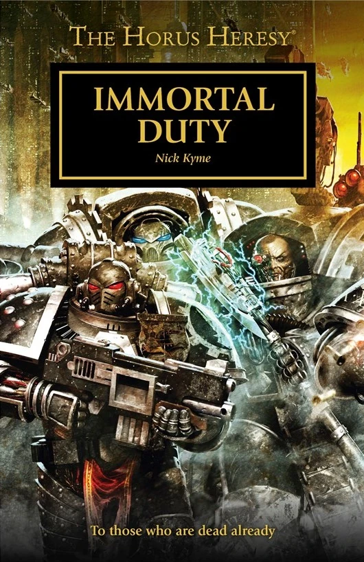 Burden of Duty follows former Death Guard Battle-Captain Nathaniel Garro as he infiltrates the Imperial Fists' mighty Starfort, the Phalanx, in order to recruit another member to his elite band of warriors. Meanwhile, on distant Caliban, former Sons of Horus Garviel Loken and Iacton Qruze undertake a mission to ascertain the true loyalties of the I Legion, the Dark Angels.