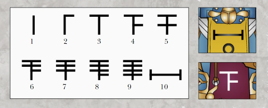 Icons commonly used by the Thousand Sons include variations of their corrupted Legion icon and runes associated with the Chaos God Tzeentch. Representations of the numbers one to ten are also employed, inscribed in inks made from rare and often magically potent ingredients by the sorcerous masters of each Rubricae squad. The colour of each Rubricae 's tabard often identifies his squad, but may also tie him to his thrallband.