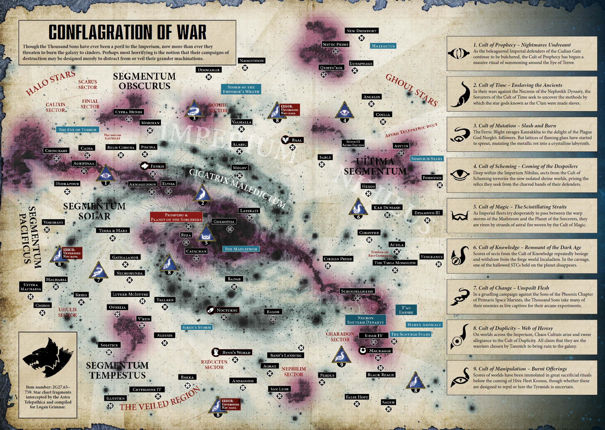 Known Thousand Sons Traitor Legion activity across the galaxy after the formation of the Great Rift in ca. 999.M41