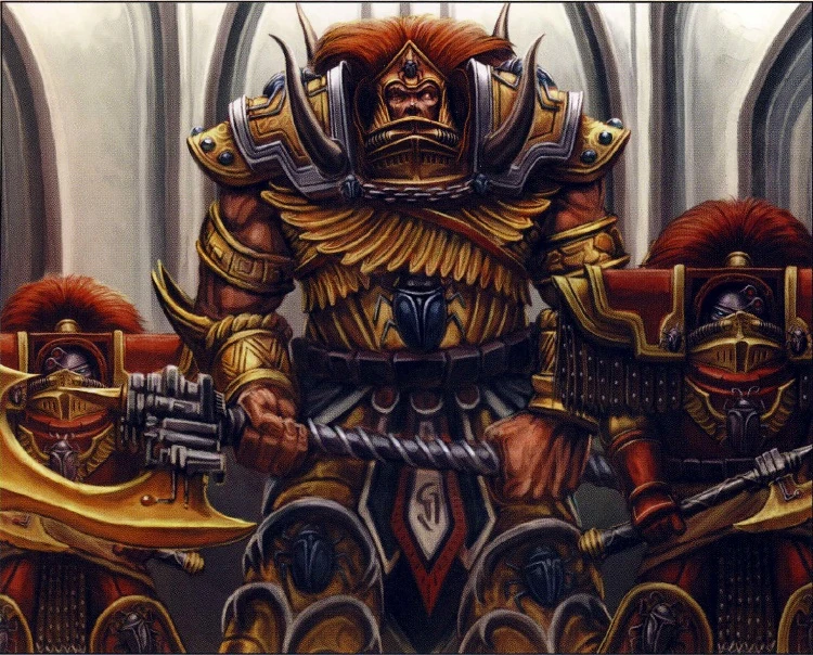 The Thousand Sons' pre-Heresy Power Armour colour scheme before being united with their Primarch displayed the ochre colours of the Immortal Regiments once raised by the ancient Achaemenid Empire of Old Earth. It was from that region of Terra that many of the XV Legion's first recruits had been been drawn.