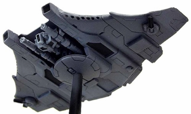 The Tiger Shark AX-1-0 is a variant of the standard T'au Tiger Shark fighter-bomber intended primarily to hunt Imperial Titans and similar super-heavy vehicles. The Tiger Shark AX-1-0 is a dedicated ground attack aircraft that carries ferocious firepower, and was developed in response to encounters with the Imperium's Titan combat-walkers and super-heavy tanks.