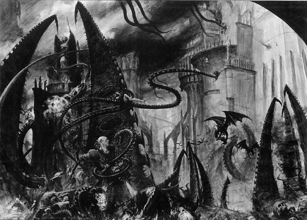 "We cannot live through this. Mankind cannot live through this. In a single day they have covered this planet with a flood of living blades and needle-fanged mouths. Kill one, and ten take its place. If they are truly without number, then our race is doomed to a violent death before every shred of our civilisation is scoured away by a force more voracious than the fires of hell themselves. Death! By the Machine God, Death is here!"