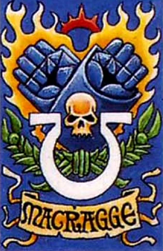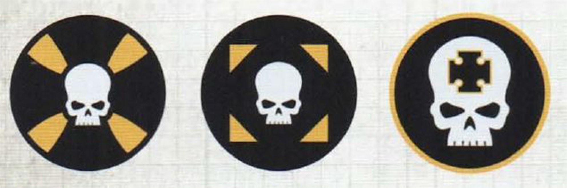 Those companies who had fought alongside the VIII Legion in the purgation of the Abhuman corsairs of the Cancerai Nebula afterwards bore black gauntlets, midnight blue helms and the ancient Terran weighing scales and death's head icon of judgement in heraldic opposition of their Legion numeral, and took the name of "Nemesis" as their own.
