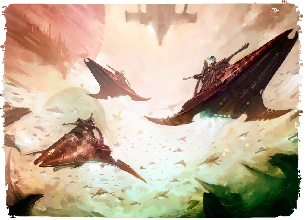 The howl of heavy weapons heralds the arrival of the Voidweavers, as enemy positions erupt into flames and confusion as the sleek gunships scream overhead. Cannons blazing, they plunge deep into the heart of the foe before blasting their way to freedom again amid welters of blood and showers of actinic sparks.