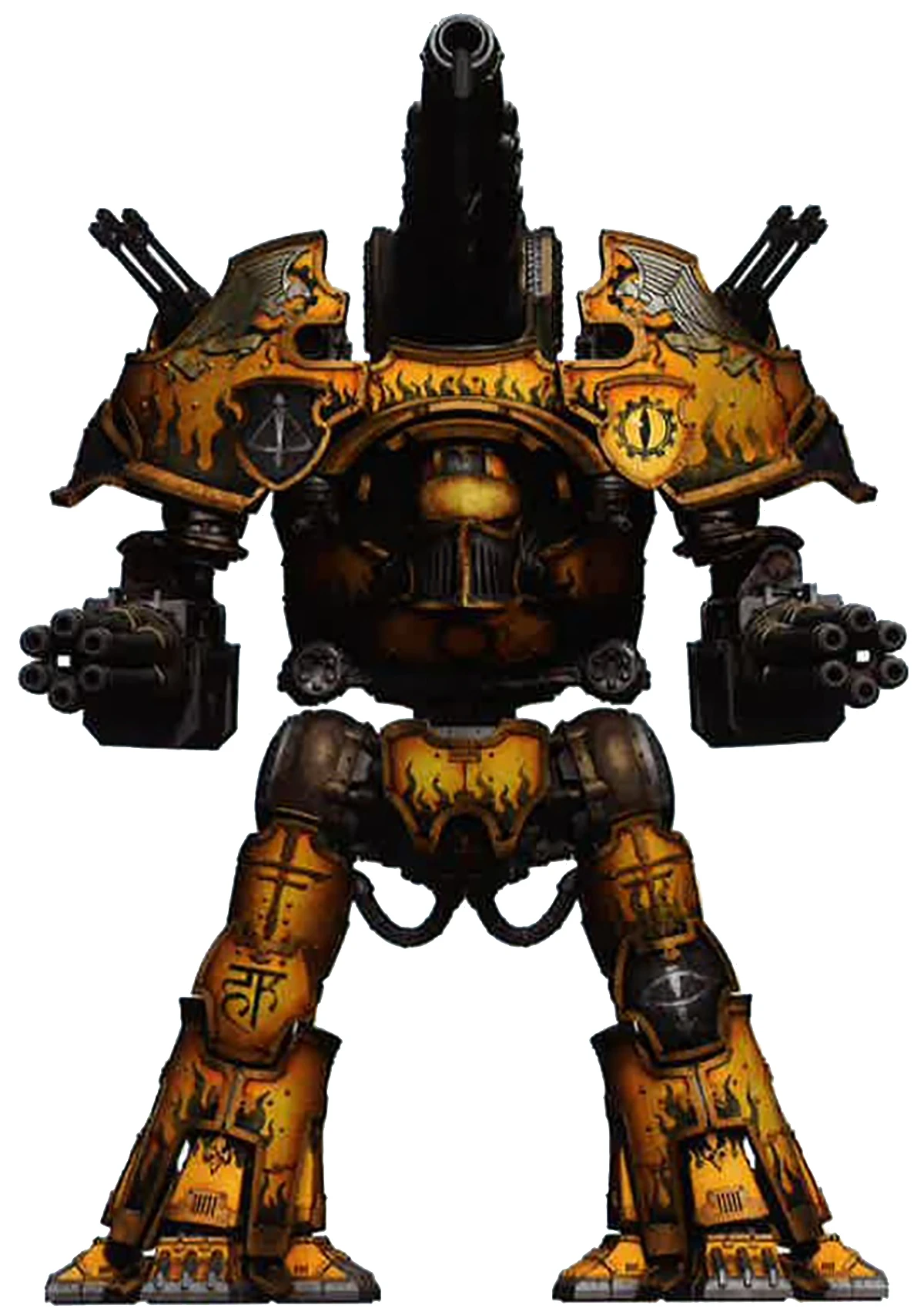 The Tech-adepts that serve in the entourage of these machines praise the intricate mysteries that brought them into creation, for they are also among the most labour-intensive of their kind, sharing little in terms of functionality and design with either the more commonplace Reaver or Warlord Titans. Many among the magi of the Machine God consider it a distinct honour to be assigned as servants for such a wondrous example of His miracles.