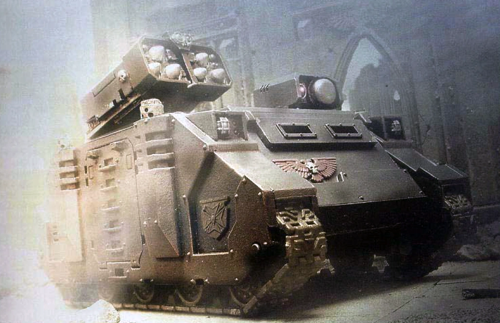 The Whirlwind is an Imperial artillery support vehicle based upon the Standard Template Construct (STC) Rhino armoured personnel carrier (APC) chassis that is now primarily used by the Space Marine Chapters of the Adeptus Astartes.