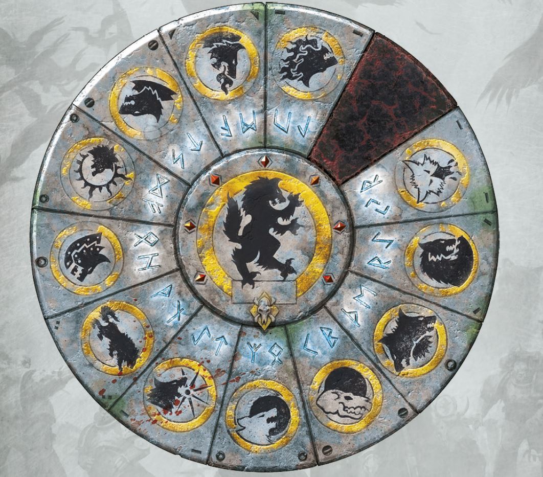 When a new Wolf Lord chooses his badge from the ancient legends of Fenris, it is added to the Grand Annulus -- the massive round, stone table where the 12 Wolf Lords gather at the centre of the Hall of the Great Wolf at the top of The Aett. It is a representation of the current organisation of the Space Wolves Chapter. Each outer segment is a separately carved stone slab which is as wide as a battle tank, taking a dozen of the strongest Space Wolves to lift just one. These carved stone slabs are inscribed with the sigil and runes of the Wolf Lord it represents.